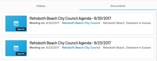 Document Archive The document archive surfaces official government documents associated with that Channel - including meeting agendas, minutes, packets, and public notices when available. Reviewing these before your meeting gives you a clearer picture of what's been formally proposed, approved, or put on record, which can be just as valuable as the meeting transcripts themselves.