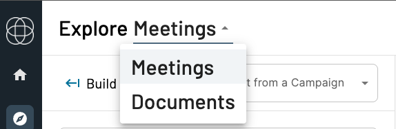 At the top of the search page, click the drop down (🔽) to choose to search Meetings or Documents. The search process works the same for either Meetings or Documents.