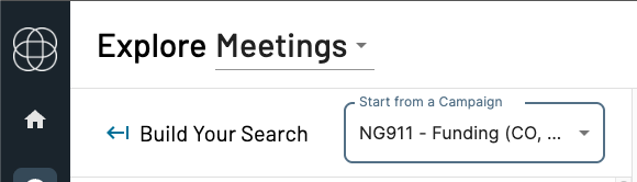If your organization has created Campaigns (pre-saved selection of key words and search criteria), use the drop down box to select a campaign to start your search with. If you haven't created a campaign, click here to learn how.