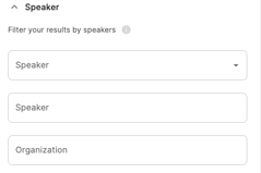 - Speaker: Filter by Speaker, Title, or Organization (e.g., Mayor, Superintendent, Director of Public Works).