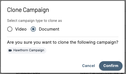 Choose whether the new cloned campaign should be a Video or Document campaign.