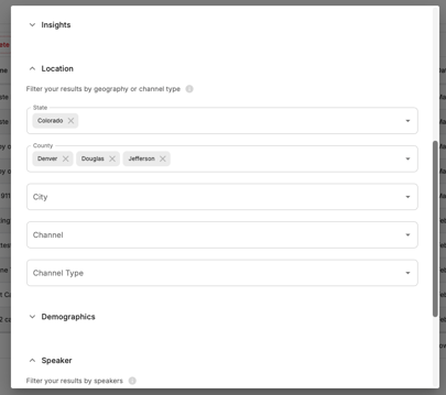 You can filter by State, County, or City - and the more specific you get, the more focused your results will be. Think of it like zooming in on a map: starting at the whole country, then a state, then a county, then a city.