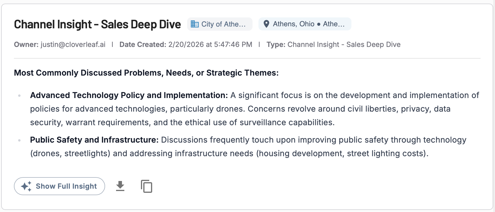 Still have questions? Contact support@cloverleaf.ai for help with managing insights.