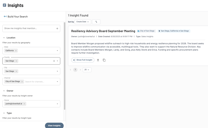Owner Filter – Limit results to insights created by you or a specific teammate