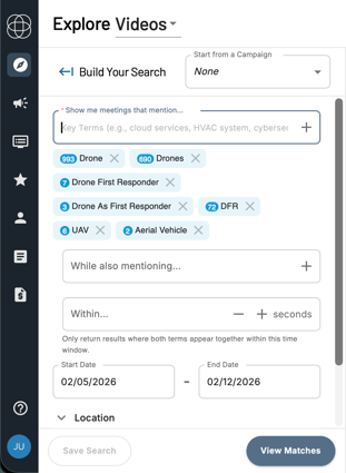 - Cloverleaf AI’s platform defaults to searching the last 7 days. If you want a wider or more specific date range, click the calendar icon and then select your date range.