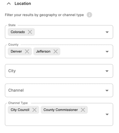 - Channel Type: search for specific levels or types of governments.